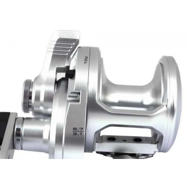 Катушка Shimano Speedmaster LD II – мощный морской мультипликатор для вертикальной ловли с катера или троллинга. Её особенностью является возможность изменения передаточного числа с помощью специального переключателя. Так, например, для выматывания оснастки с большой глубины удобно иметь высокое передаточное число, а для борьбы с крупной рыбой – низкое, в результате чего увеличивается тяговое усилие механизма. Катушка имеет прочный корпус S-Compact Aluminium, который надёжно удерживает все детали, исключая появление люфтов. Мягкому вращению способствуют 4 шарикоподшипника Shimano A-RB, не подверженных окислению даже под воздействием морской воды. Шпуля из литого алюминия имеет плавный ход благодаря системе Super Free System для лёгкого и быстрого сброса приманки на большую глубину. Мультипликатор лишён лесоукладчика, так как он предназначен для высоких нагрузок, с которыми этот элемент не справится.